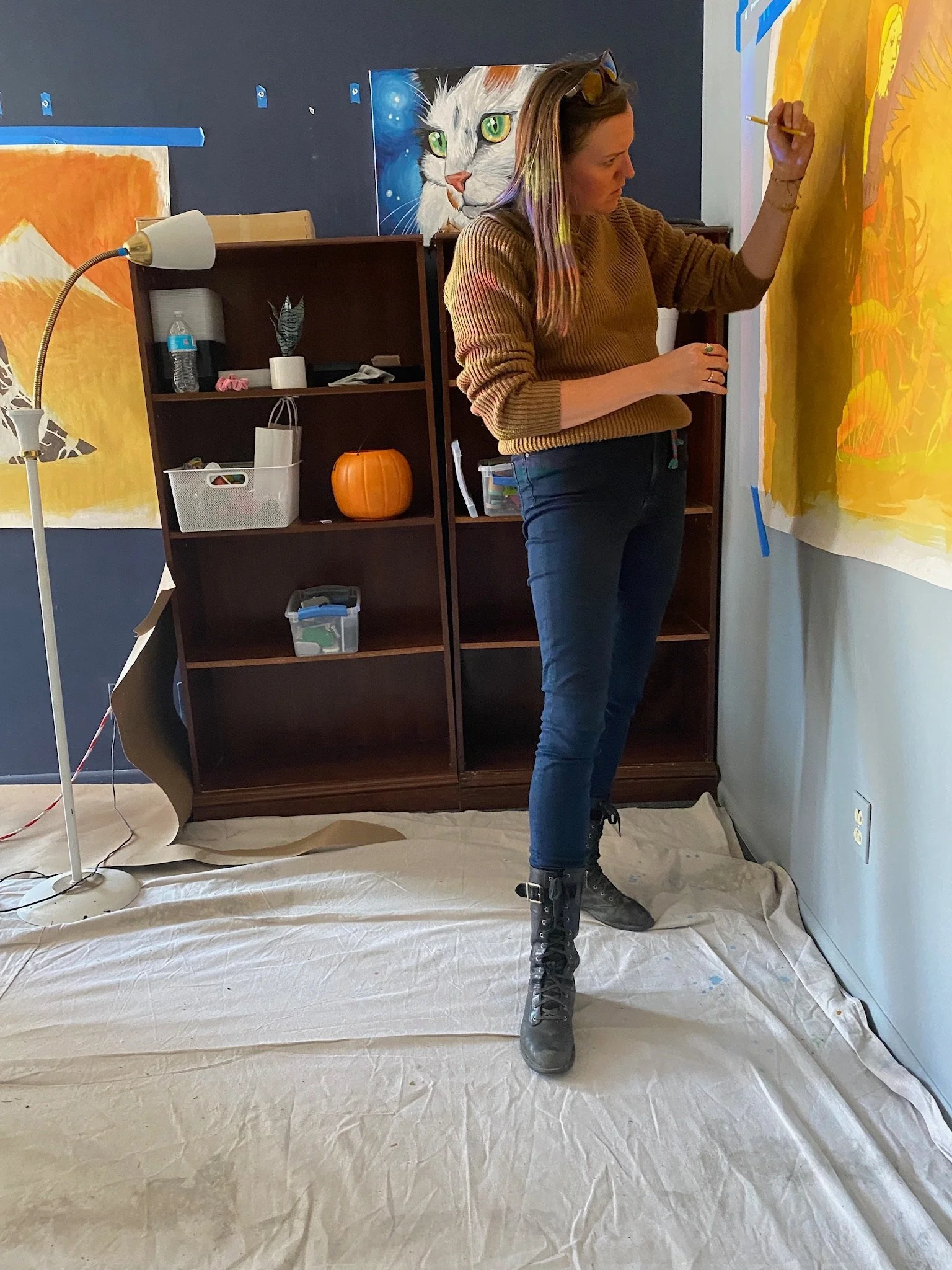 For this proof of concept video for a youtube channel, we painted this 12'x20' length of vinyl flooring to look universally grassy and mossy. I considered this floor to be the biggest watercolor I have ever painted.
