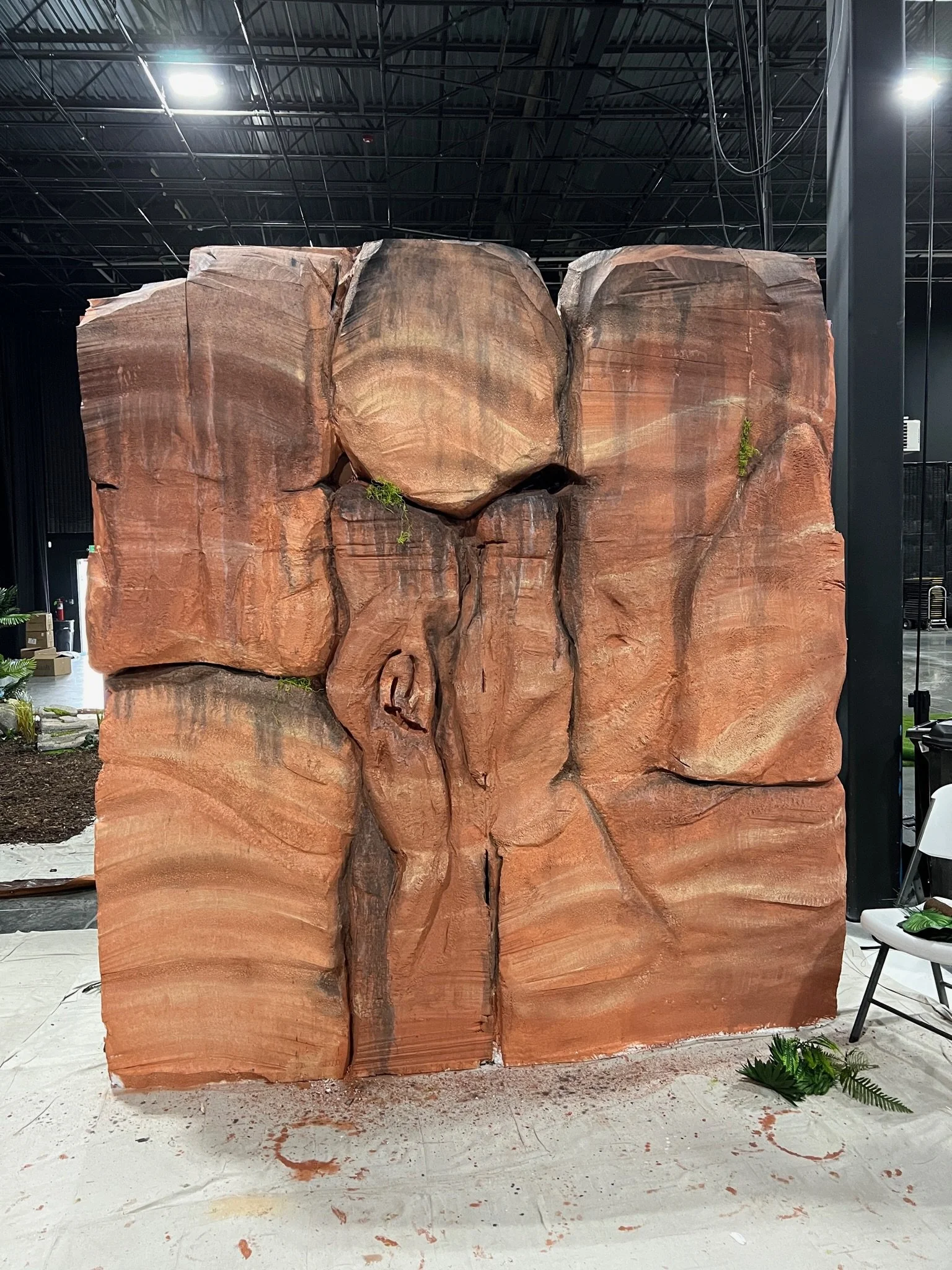 This 8'x8' foam wall came about because the commercial concept called for a lifesize anatomical diagram to display proper placement of their products, a menstrual cup and menstrual disc. I had the most excellent crew for this one, including Stephen McManus, an excellent scenic painter, Melissa Mae, artist creator extraordinaire, and Michael Frazier, extreme craftsman.